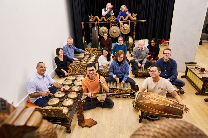 Im Gamelan gibt es immer eine Melodie, die sich allerdings oft zwischen zahlreichen Schichten von Verzierungen und Improvisationen versteckt und sich aus den Partien verschiedener Instrumente zusammensetzt. Zunächst sieht die Musik sehr perkussiv aus und klingt auch so – aber wer etwas länger zuhört, entdeckt gesangliche Phrasen. Das Repertoire reicht von zarter Kammermusik bis zu Stücken voll wilder Energie. Dabei bleibt immer Raum für Improvisation, sodass die Musik jedes Mal ein wenig anders klingt.